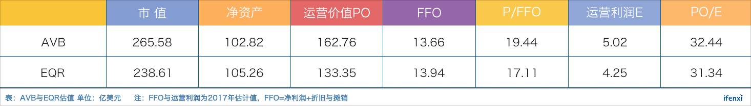 我们以AVB和EQR两家公寓REITs为代表,研究美国成熟市场对长租公寓的估值体系。REITs本身存在不断的资产销售和资本性支出,一般采用P/FFO(Funds From Operations)进行估值。可以看到,两者的P/FFO较为接近,在17-20x之间。
