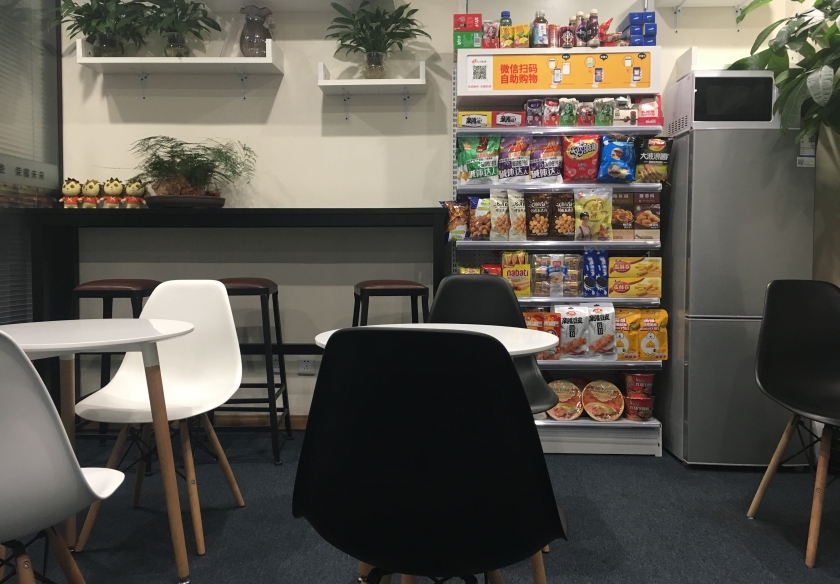 对于联合办公来说,他们同样需要无人货架,因为零食和生鲜几乎是上班族的刚需。