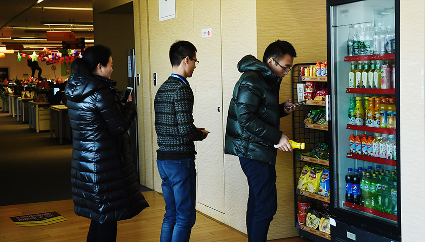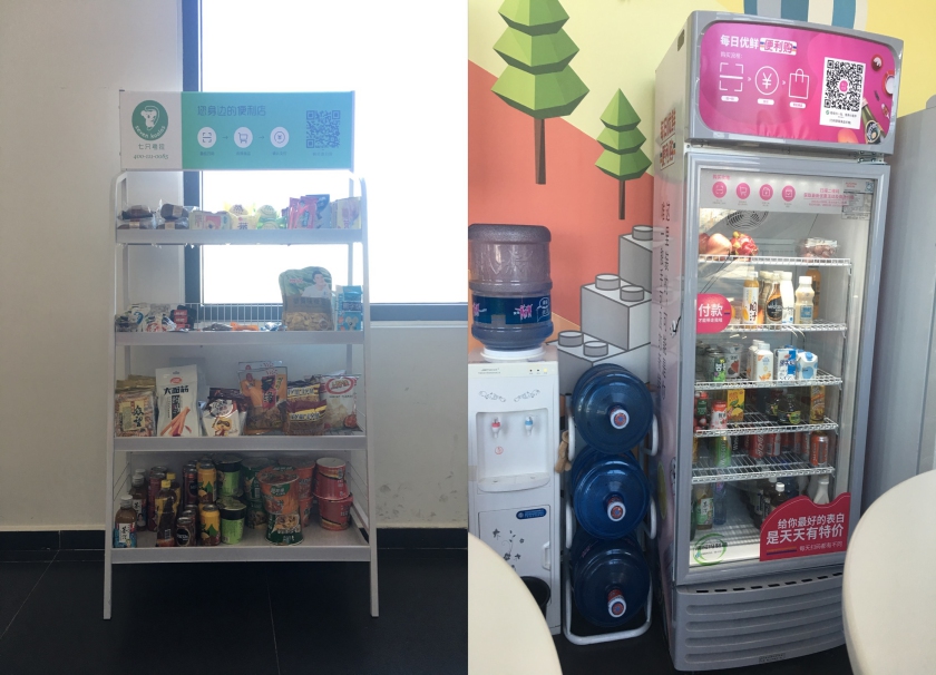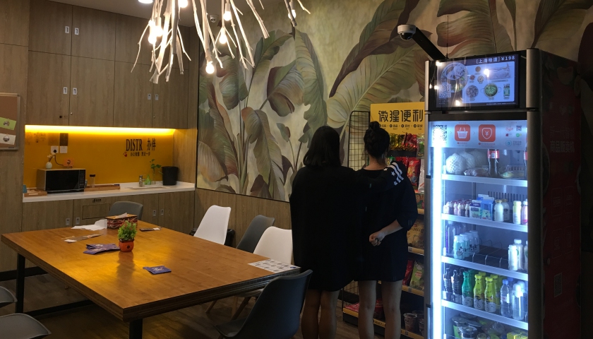 做出同样选择的还有位于北京建外SOHO的“学而贵”雅思培训学校,他们在17楼和30楼都有办公点。尽管这里三天之内就有两批每日优鲜便利购人员前来刷楼,在楼上办公室放进了小e微店的零食货架后,行政经理也再没有接受其他品牌。