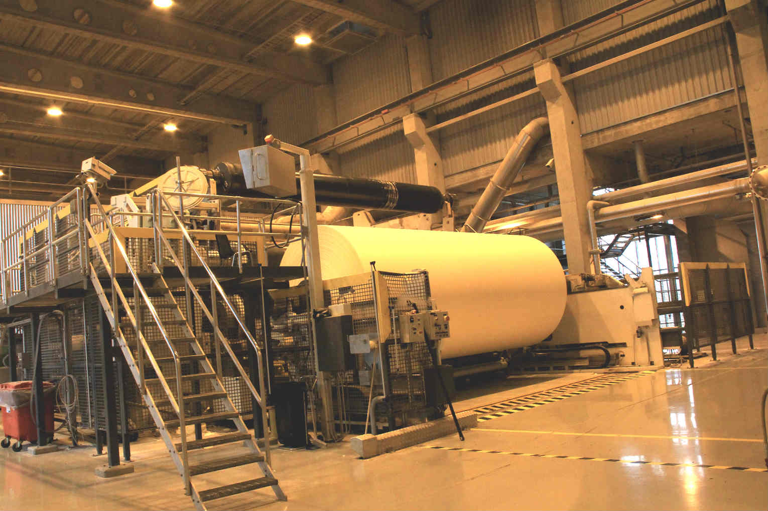 在位于芬兰Tervassar的Tervasaari纸厂,记者见到了目前世界上最宽的生产格拉辛纸的纸机,这台64米宽的机器可以以每分钟1500米的速度进行生产。