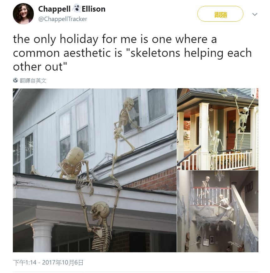 看到这些“小骷髅互相帮助”的装饰,我才觉得万圣节真的会让人开心。