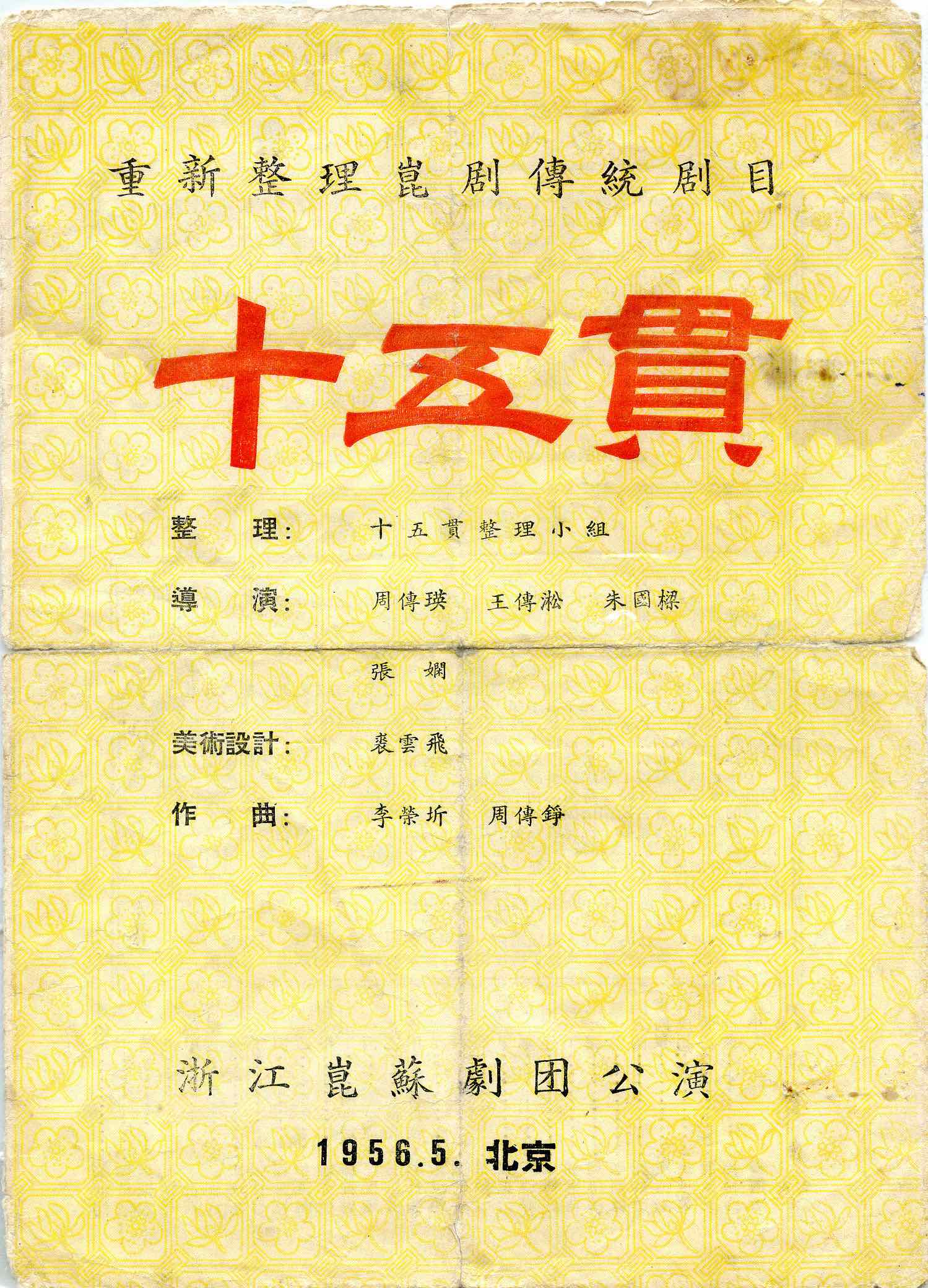 1956年初,到浙江贯彻“百花齐放”“推陈出新”的田汉观看了《十五贯》,认为改编得化繁为简、非常成功,建议《十五贯》晋京演出。在昆苏剧团的基础上,浙江昆剧团组建而成,也是当年全国唯一的昆剧艺术表演剧团。同年4月,浙江昆剧团携《十五贯》入京。从4月10日至5月27日,《十五贯》在北京公演47场,观众达7万人次。