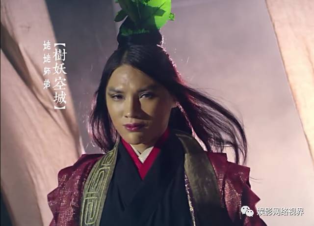 网络电影《兰若寺》讲的是聂小倩的妹妹聂小烟的故事。片中的大反派树妖空城是黑山老妖的师弟。只见他画着金色的眼影、夸张的欧式内眼线和猪肝色的口红,身着紫色金丝套装,头上还顶着一片绿叶……真的还挺吓人的,简直是葫芦娃成精了有木有。
