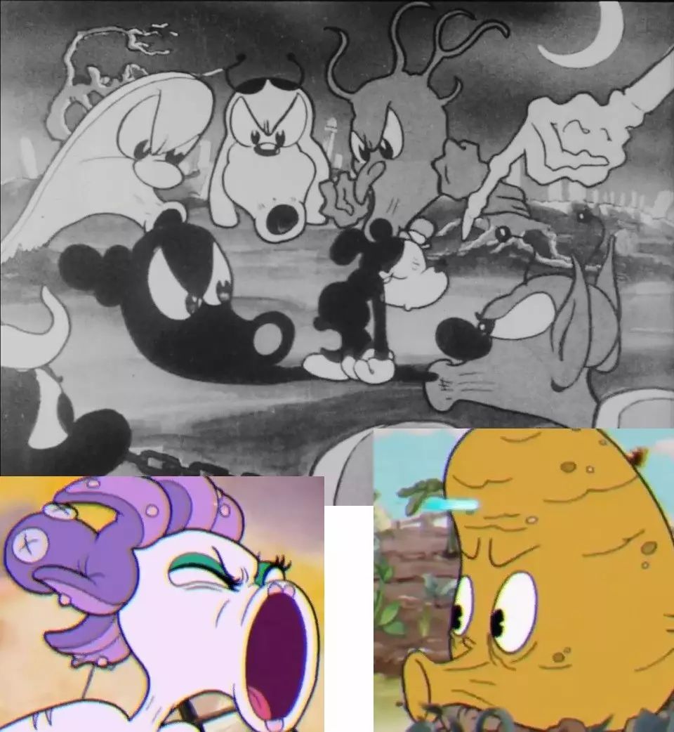 在《茶杯头》的各个BOSS中,我们也能看到来自其他《糊涂交响曲》系列的设计灵感,而且无一例外的是,他们都来自1933年至1937年间休默设计并作画的角色。