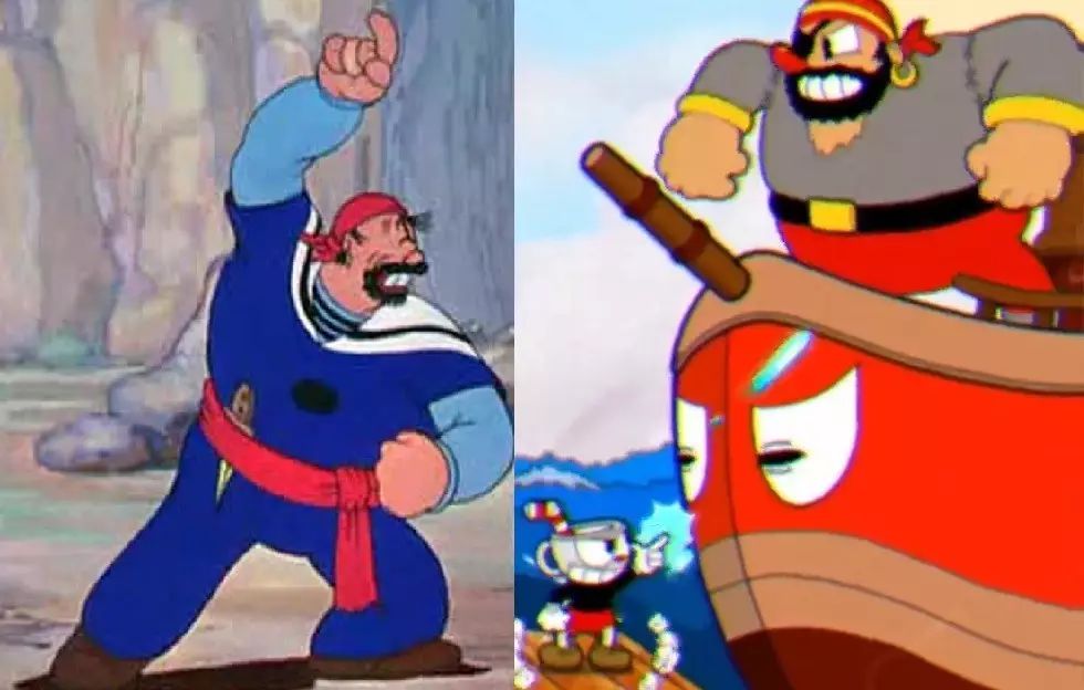 鲍斯基的代表作,就是1936年他导演的《当大力水手遇到水手辛巴达》,他是《大力水手》两位主要导演之一。我们可以看到除了《茶杯头》有大量造型设计吸取了这一阶段的弗莱舍风格,同时,也有一些BOSS几乎是直接从片中搬过来一样!