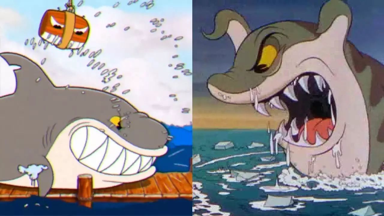 海盗船长BOSS召唤出的鲨鱼形象,借鉴了1934年《Peculiar Penguins》中休默负责作画的鲨鱼。