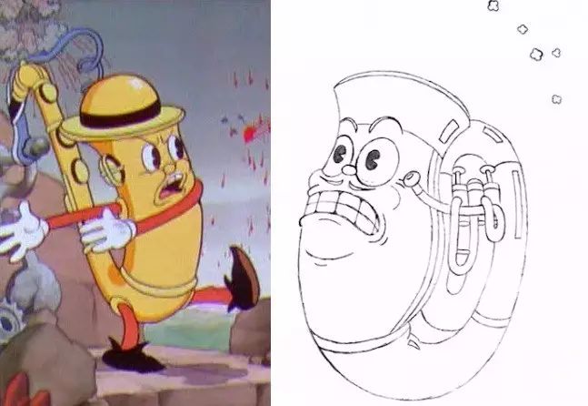 官方最近公布一个以乐器小号为形象的小BOSS,几乎就是1935年《Music Land》中休默负责作画的萨克斯角色的翻版。