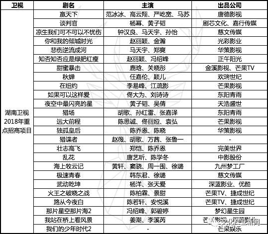 首先,来看一下五大卫视2018年招商电视剧汇总(网传最全):