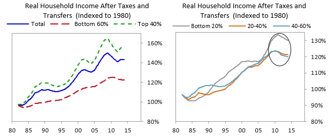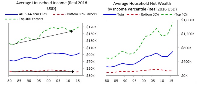 最富有的40%的平均财富是最贫穷60%的十倍,这一比例在1980年代还是六倍;
