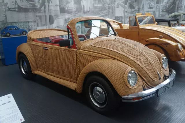 没有在博物光里看到这辆由柳条编织而成的敞篷版甲壳虫,你的大众博物馆参观之旅就不算完整。这辆特别的甲壳虫由德国篮子制造商Thomas Heinrich设计制造,除了它之外,馆内还有一些甲壳虫车型也覆盖着千奇百怪的材质,不愧是史上最会玩的车型之一。