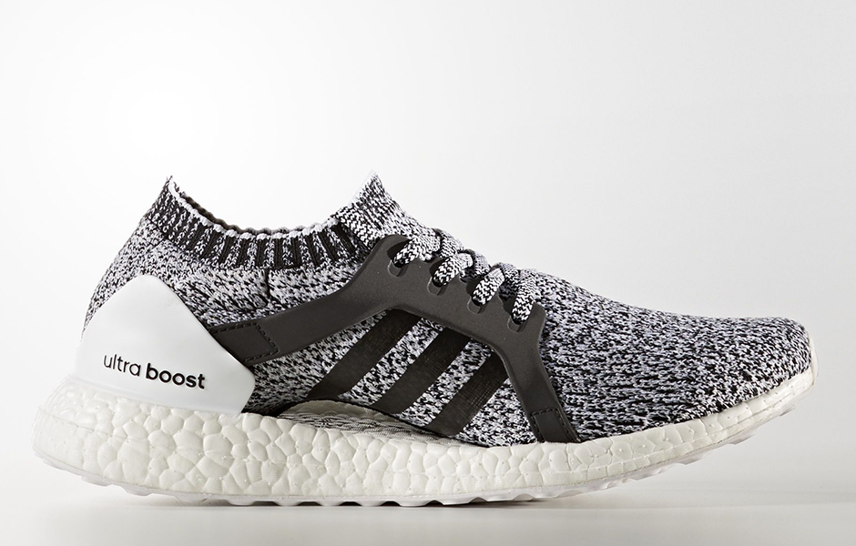 Adidas Ultra Boost的奥利奥配色推出女性款式,鞋面依旧是由黑白混合的Primeknit材质打造。鞋侧的黑色支架与白色的鞋跟支撑架包裹鞋身,Boost泡沫底更添一份舒适感。