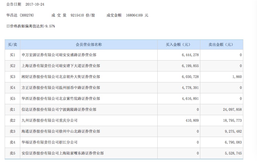 在10月24日华昌达盘后数据中,信达证券股份有限公司宁波姚隘路证券营业部及九州证券股份有限公司重庆分公司现身卖1,卖2的位置,卖出金额均过千万。