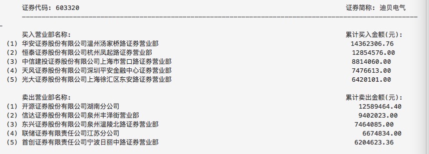 除此而外,迪贝电气24日跌幅达10.23%,成交金额20328.23万元,成家量480.47万股,卖出营业部中,仅开源证券股份有限公司湖南分公司营业部卖出金额突破千万。