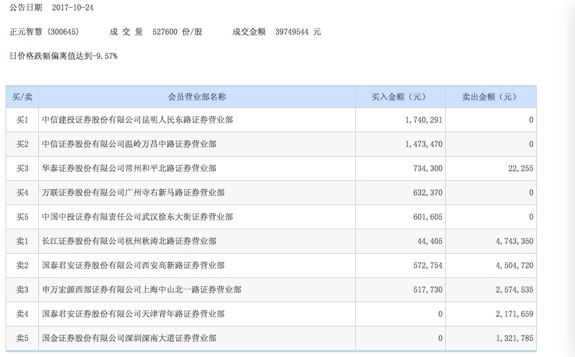 正元智慧24日跌幅9.57%,成交金额3975万元,卖出营业部中,均没有突破千万的卖出金额。霍昕对界面新闻记者表示:“这只能说是市场合力,一起卖导致的‘闪崩’”。