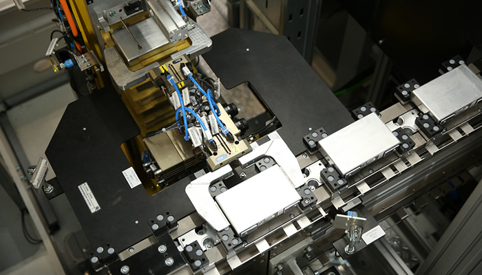 整个生产过程的工作环境都有严格的清洁度及温湿度控制。等离子清洁技术的应用,保证元件的表面清洁度并提升表面张力,使元件之间的绝缘箔片及胶可以更好地附着在金属表面上。在双模组生产的最后阶段,全封闭的工作站更严格控制相对湿度低于31%,以确保涂胶质量。机械臂上的吸盘结构也是自动生产线的一大亮点,通过吸盘来抓取并传送电芯元件,既不会携带杂质,又避免了手动操作可能的风险。