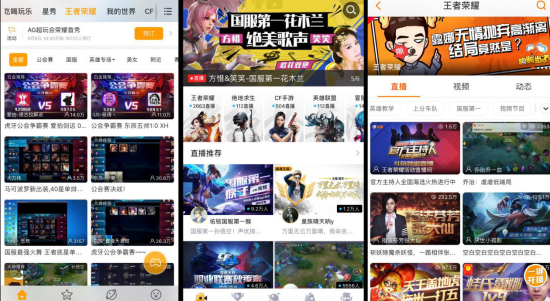游戏直播APP前三强围绕王者荣耀的直播,无论是主播人数还是观看人次,都达到了相当可观的数字。根据实测,晚10:00左右,排名第一的虎牙,其王者荣耀专区的热门直播前三名,平均观看人数在18万左右;企鹅电竞王者荣耀区有2663位主播同时在线,数量远超其他专区;而斗鱼的明星主播,观看人数超过100万。