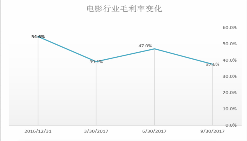 比较光线传媒各期的毛利率水平,可以发现2017年第三季度电影行业的毛利率滑落到了低点。