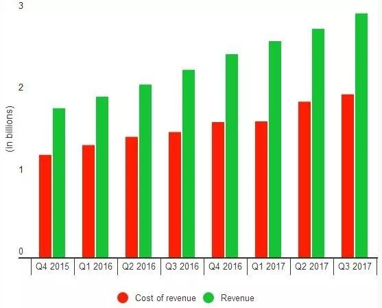 下面表格中的数字是Netflix的主营业务成本(包括内容制作成本在内),可以清晰地看到Netflix在构筑内容护城河的过程中不断提升的成本支出。Netflix今年第三季度的运营支出达到19.93亿美元,同比增幅达到30%。在过去的11个季度中,Netflix的营收增幅一直超过20%,但自2015年第一季度至今,Netflix的运营支出增幅也一直在20%以上。