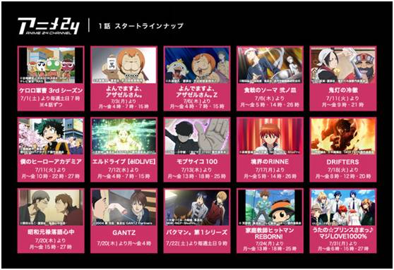 AbemaTV包括直播、新闻、音乐、体育、动画等24个频道,并且基本满足24小时免费观看,也有月费960日元的点播服务。其中,AbemaTV的动画内容一直有着很高的人气,四个动画频道分别是 “Anime24 频道”“深夜动画频道”“怀旧动画频道”“家族动画频道”,涵盖了不同年龄层的看番需求。目前,AbemaTV播出的TV动画与剧场版动画已有700部以上。而且,今年CyberAgent还宣布,6月中旬与游戏子公司Cygames共同成立动画投资基金“CA-Cygames动画基金”,基金总额达到了30亿日元,希望通过双方共同投资动画IP,来扩充“AbemaTV”的动画内容。