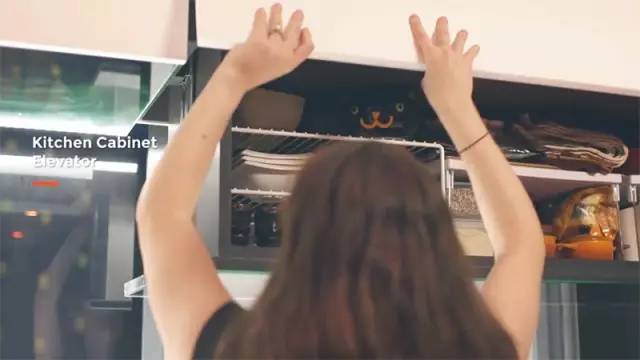 或者智能拉篮。轻触面板,即有下拉的厨房拉篮,使女主人不再受重物烦扰,也让操作台面的收纳显得更有序整洁。