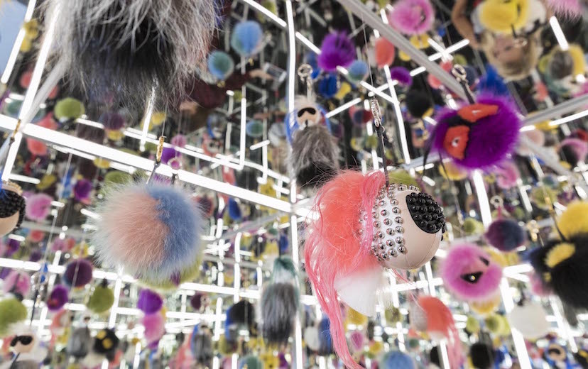 这个自拍空间由数面镜子和Fendi这两年热卖的毛球配饰组成,创意原理与日本艺术家草间弥生的镜子屋十分相似。当近两百个毛球小怪物(Bag Bugs)从镜子屋的顶端悬挂而下,任谁走进去都会觉得自己置身于一个毛球的海洋。品牌把这个屋子命名为“Obsession Room(痴迷屋)”。其用意不言而喻。