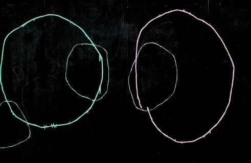 开始是大黑圈,随着时间推移,一年年变小,而且都在红颜色和蓝颜色上面,从原来微观的层面变成了宏观的层面,像宇宙的图像。