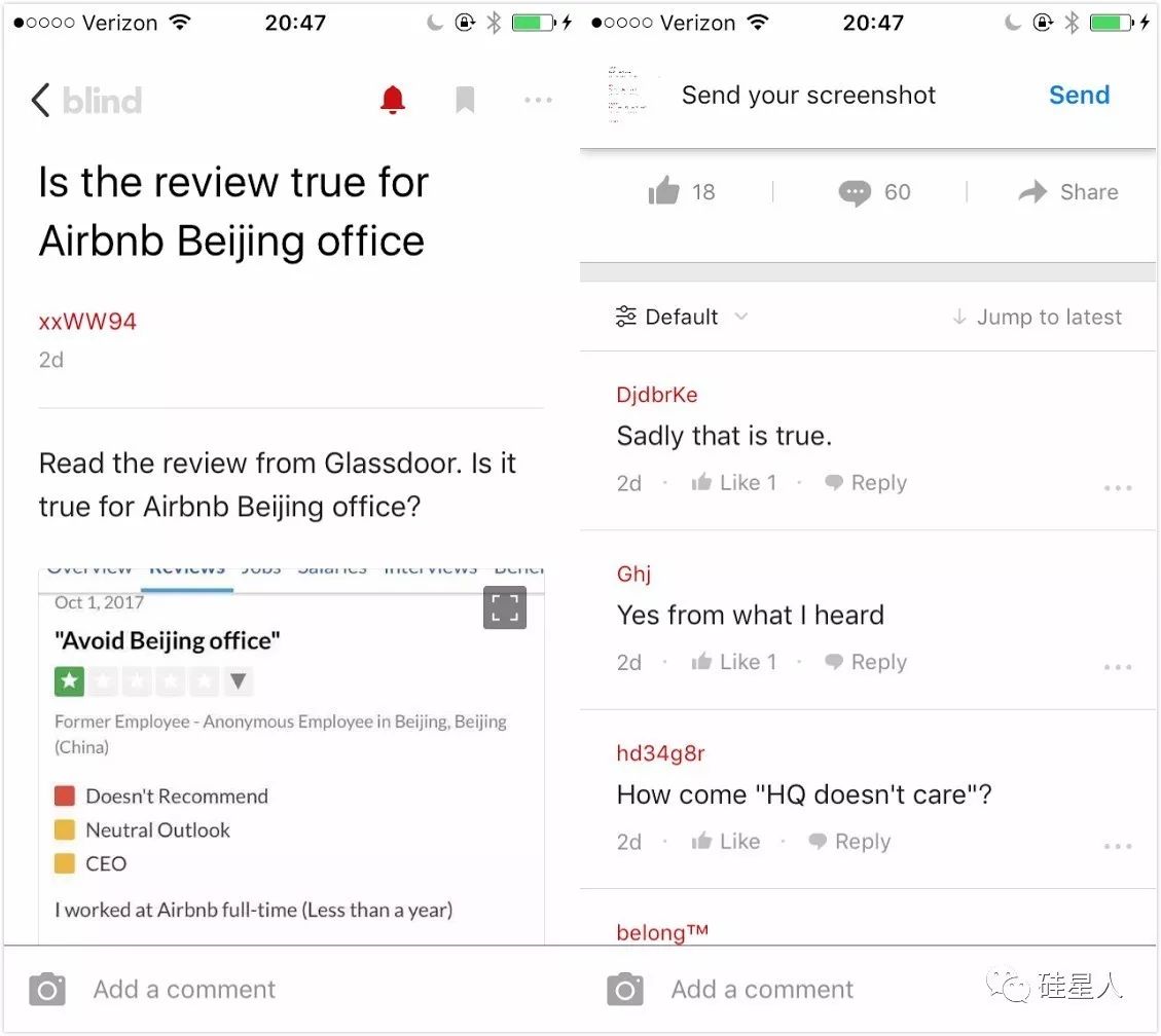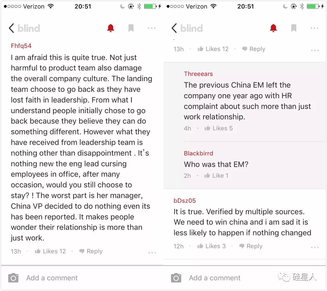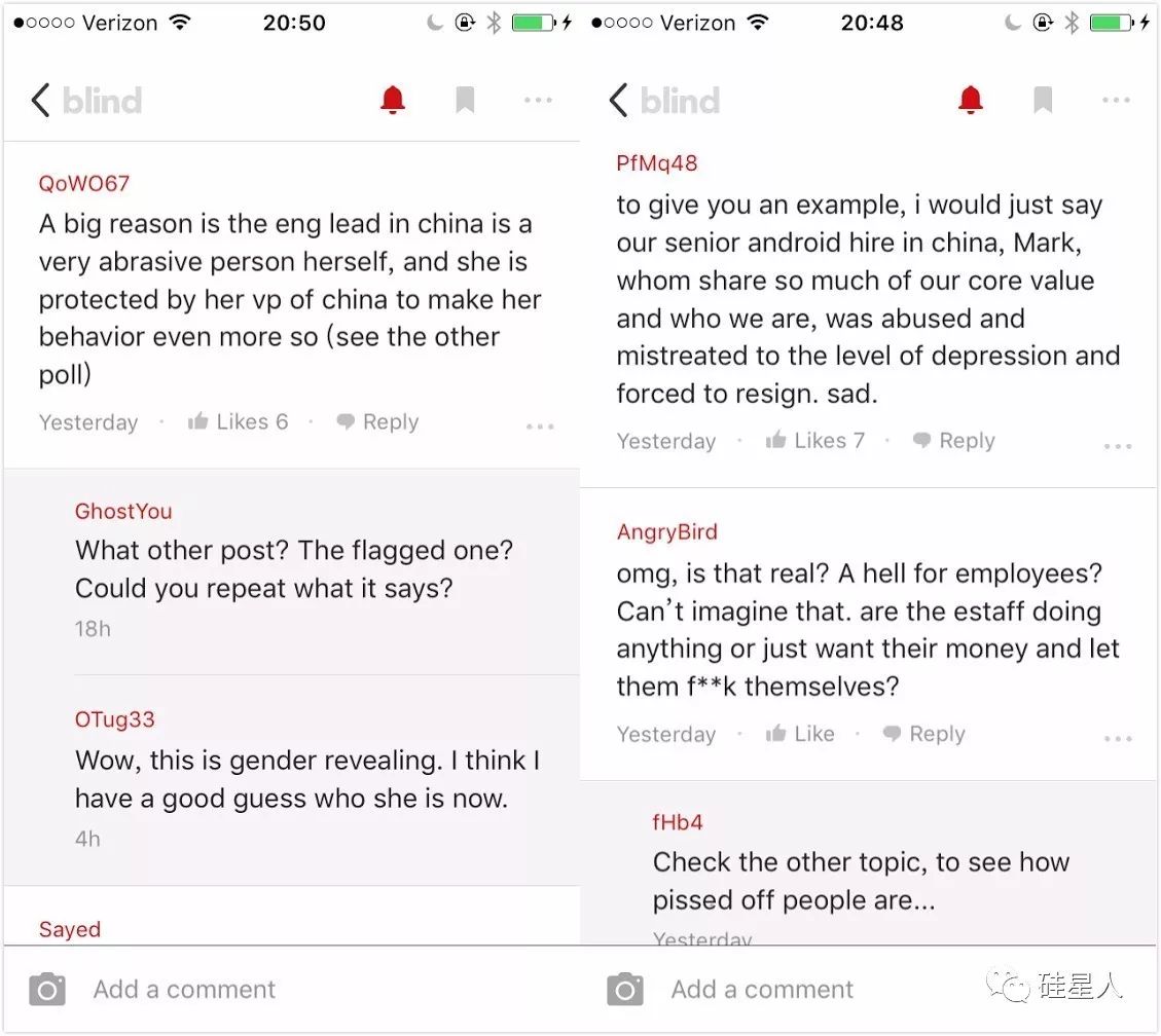 Blind 是硅谷很流行的一个匿名职场社区,只有用公司后缀邮箱才能注册,而且只有本公司的人才能看到。根据内部人士向硅星人提供的Blind 截图,有员工把 Glassdoor 里的截图发到了Blind 上,询问是否属实。