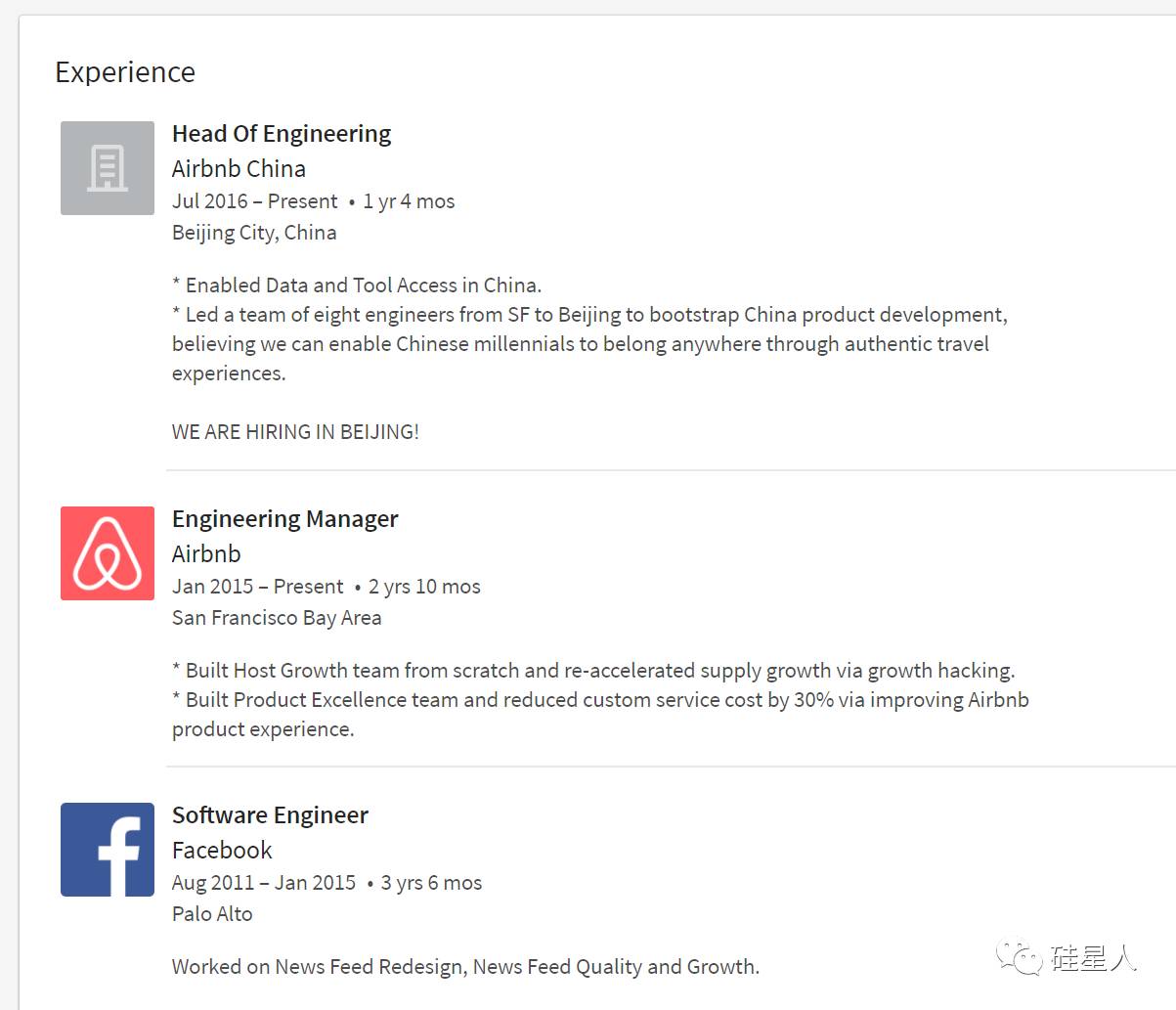 LinkedIn 资料显示, 2015 年初,该主管才从 Facebook 跳槽到 Airbnb,职位是工程经理 (Engineering Manager, EM),工作地点在旧金山。