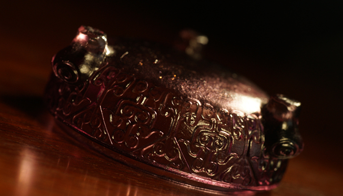 五行中,而长夏属土,“长夏者,六月也。土生于火,长在夏中,既长而旺,故云长夏也。”所以我们选择代表承载、受纳的琥珀色铸成博山炉。
