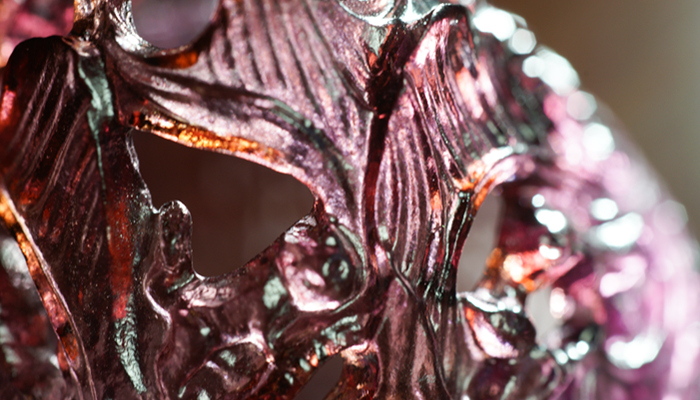 五行中,夏属火,代表温热、向上,玉透日光,蕴紫火之光。我们为琉璃博山炉配以火焰燃到热烈时的紫色,明照万物。