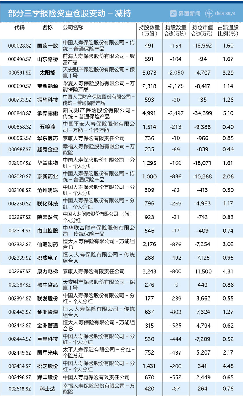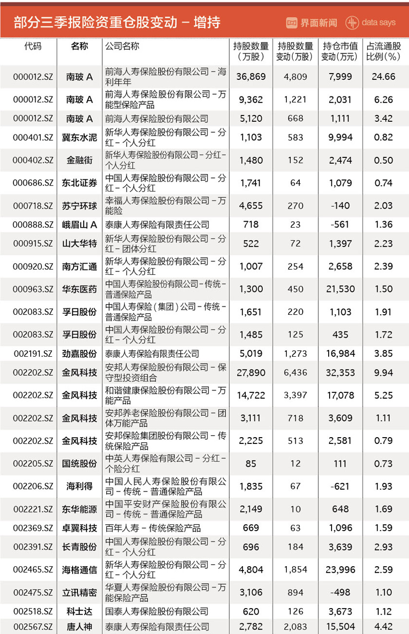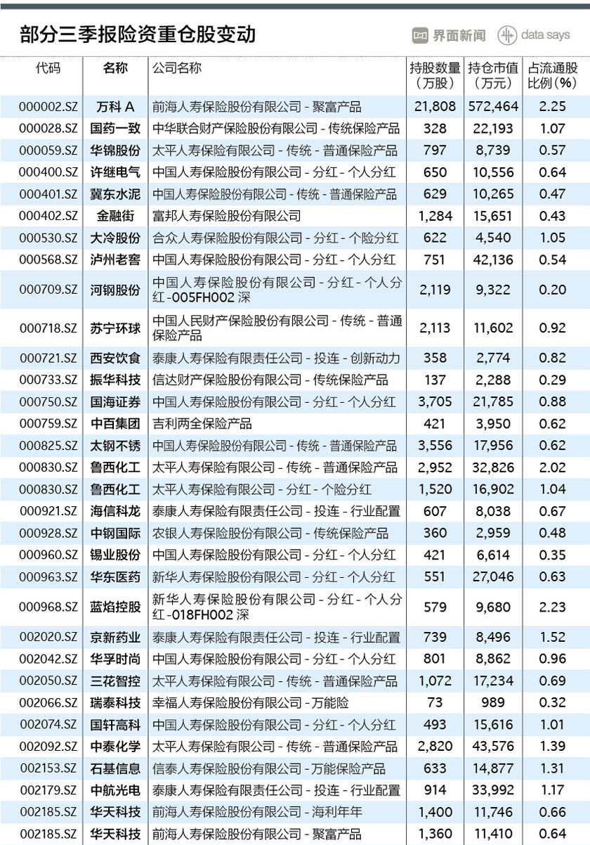 随着上市公司三季报的披露,保险资金前三季度重仓股变动陆续揭晓。