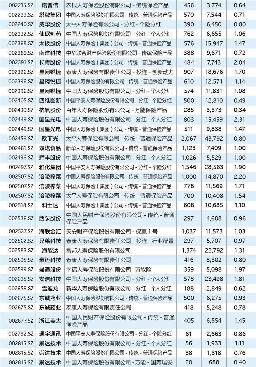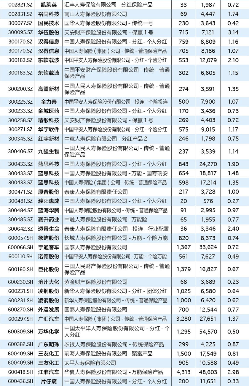从持股比例来看,国华人寿保险股份有限公司-分红三号新进龙宇燃油(603003.SH)持股比例最高,占流通股比例达5.72%;华夏人寿保险股份有限公司-万能保险产品新进哈投股份(600864.SH)次之,占流通股比例亦超过5%。
