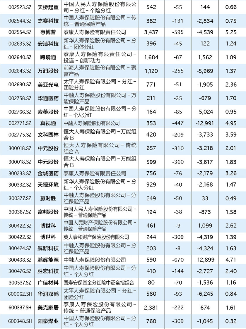 当然,还有一些股票被险资减持了,共有77个险资账户减持了71只股票。
