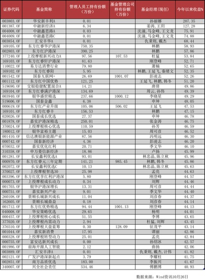 在基金公司员工们跟投的产品中,究竟哪些产品最赚钱呢?下表为所有公司员工的自持基金中,今年最赚钱的50只: