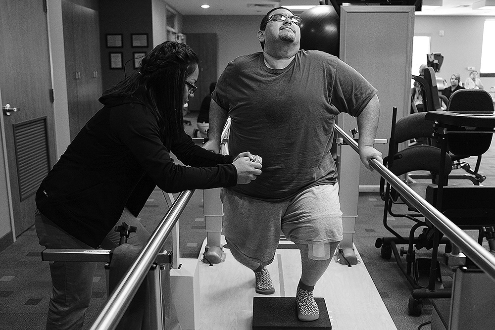 Garcia的第一次膝关节置换手术很成功,他开始接受术后的物理治疗。