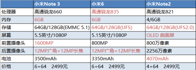 小米Note 3是小米今年9月11日发布的旗舰Note系列新品,定价2499元起。不过按照小米之前的产品系列划分,小米Note是高于同期小米数字系列的更高产品。但从配置来看,不仅与小米采用的高通骁龙835处理器、UFS存储的小米6比,配置明显下降,更是打破了小米Note系列一直采用高通最新旗舰处理器的惯例,甚至其屏幕也从小米Note 2的三星OLED曲面屏改为了1080P的5.5英寸屏幕。或许这也是第一手机界研究院认为其“定价过高,产品性价比低”的原因。