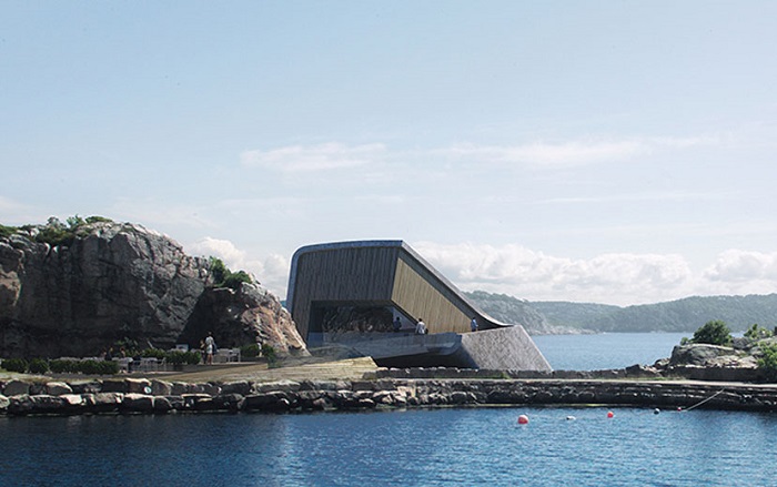 现在欧洲也开始筹划自己的首家水下餐厅,它就是位于挪威海岸线最南端的båly村的Under餐厅,将于2019年3月正式开始对外营业。Under餐厅的设计工作由国际知名的设计工作室snøhetta完成,从1989年开始,snøhetta工作室已经完成如埃及亚历山大图书馆、纽约时代广场改造等世界各地公共文化建设项目,工作室在挪威和纽约都设有办公地点。此番参与设计Under餐厅,整个设计团队同样脑洞大开。