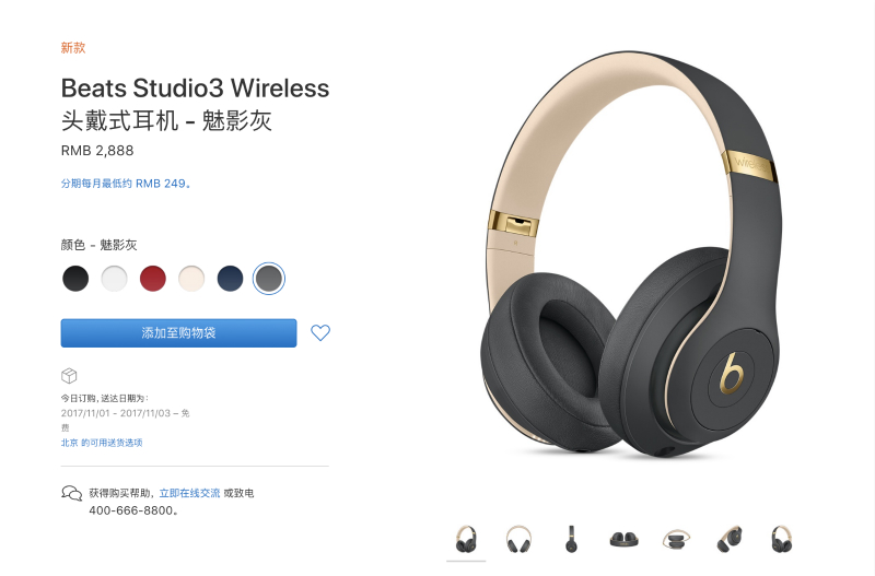 Beats Studio 3 Wireless售价为349.95美元,售价相比去年的Solo 3贵了50美元。