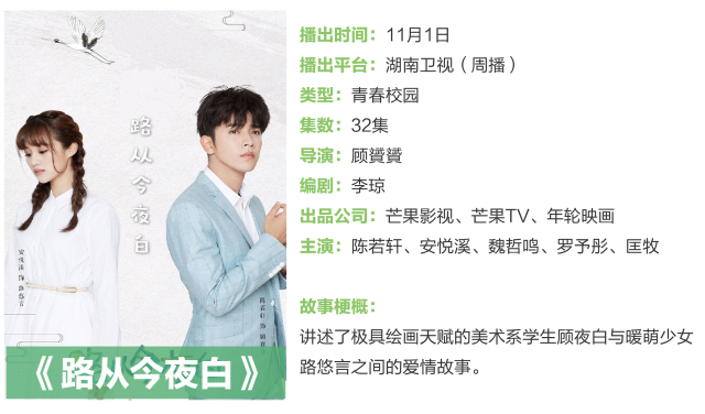 《路从今夜白之遇见青春》讲述了极具绘画天赋的美术系学生顾夜白与暖萌少女路悠言之间的爱情故事。顾夜白与路悠言因一场意外而相识,从此同病相怜的两人被紧紧捆绑在一起。二人逐渐被彼此深深吸引,但横亘在他们面前的不仅仅有情敌的干涉,更有面对生死与爱情难以两全时的抉择。