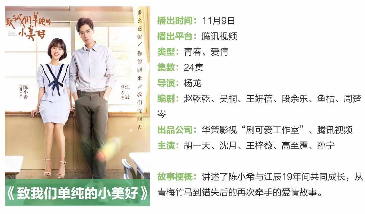 此外,邢昭林、张予曦的奇幻爱情剧《无法拥抱的你》,胡一天、沈月主演的青春校园剧《致我们单纯的小美好》以及《你好,旧时光》、《欢乐无双》等剧同样备受期待。谁能在年末大战的预热中打响头一战?让我们拭目以待。