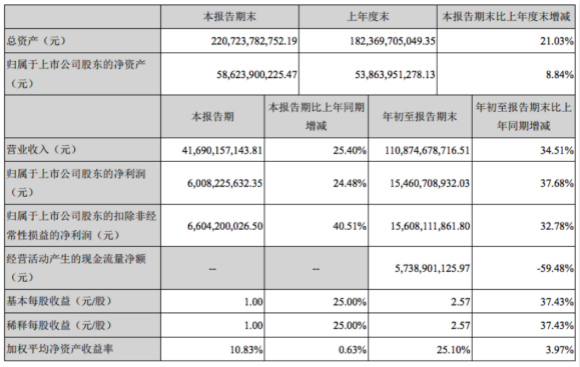 其中三季度格力营收为416.90亿元,报告期内比上年同期增加25.40%,归属上市公司股东的净利润达到60.08亿元,同比增加24.48%。