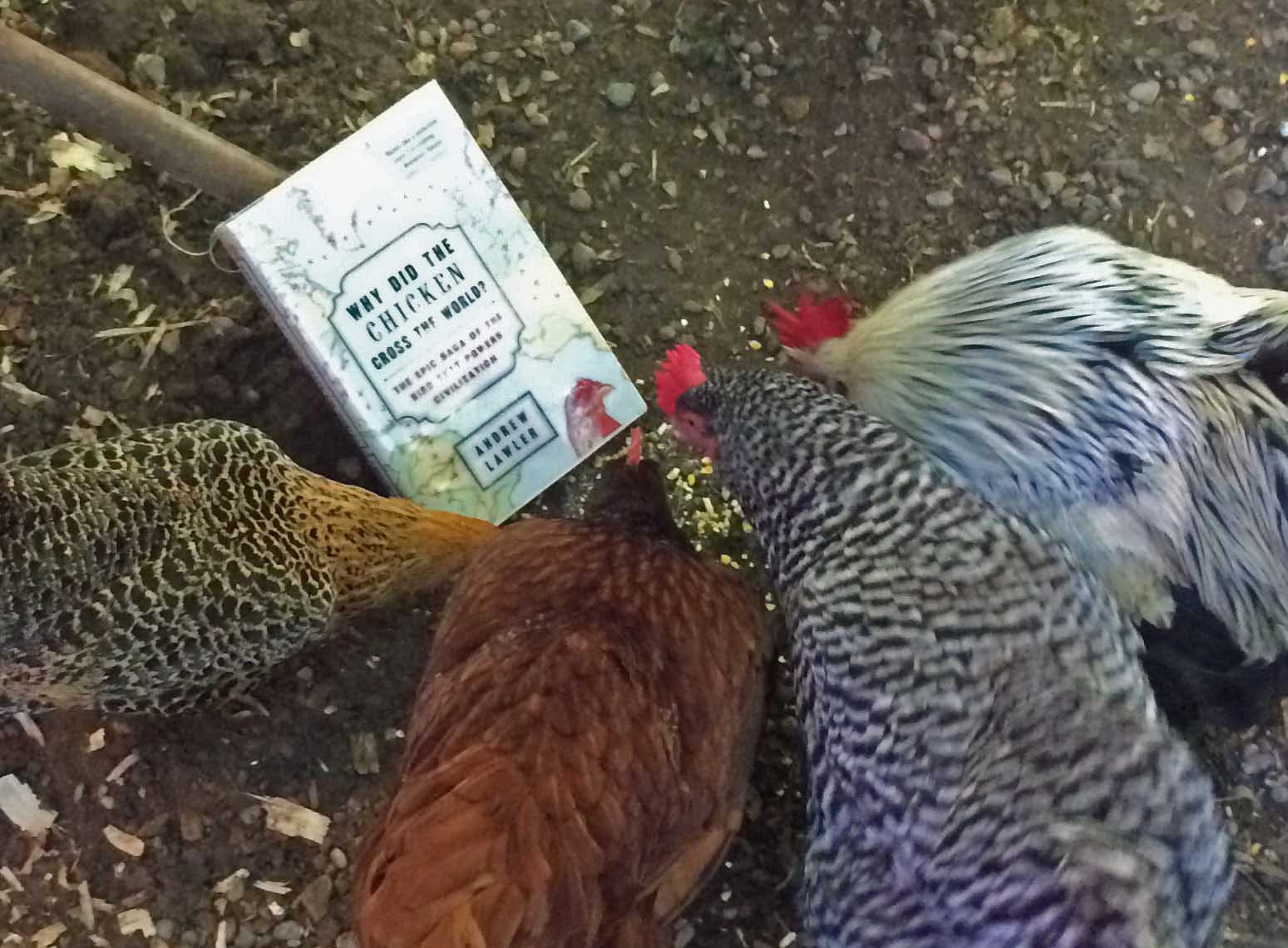 《科学》杂志撰稿人和《考古学》杂志特约编辑安德鲁·劳勒(Andrew Lawler)写了一本书,名字就叫《鸡征服世界》(Why Did the Chicken Cross the World?),其内容涉及生物学、进化论、考古学、经济学、文化、宗教、历史等多个方面,从方方面面讲述了这种无处不在又令人惊喜的鸟类的故事。