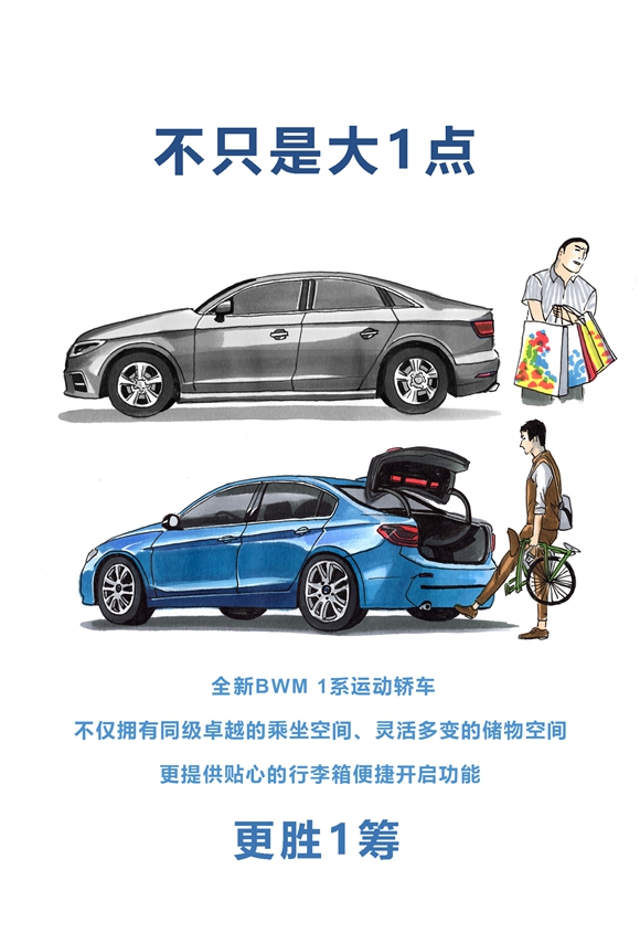 最后是豪华。其实每个人心中对“豪华”二字都有着独一无二的解读,有的人对真皮座椅情有独钟,有的人无法割舍镀铬装饰条。从BMW 1系轿车及其竞品所触及的消费人群来看,豪华车对这部分人来说其实更多时候是一种比家用车想得更周到的体验和更熨帖的细节,比如BMW 1系轿车所使用的后备厢智能感应开启就很好地解决了东西太多如何放进后备厢的难题。