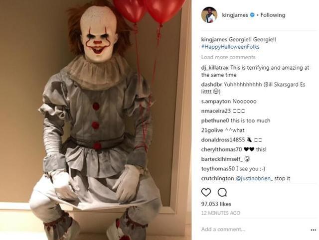 虽然骑士本赛季开赛状态不佳,以3胜4负的战绩排在东部前八开外,但这似乎并未影响詹姆斯的好心情。而且他还积极操办了万圣节派对,并邀请全队参加,帮助队友调整状态。今天,詹姆斯在推特里晒出自己万圣节的装扮,他cos的是《小丑回魂》里的角色,并配文“Georgie!Georgie!!”