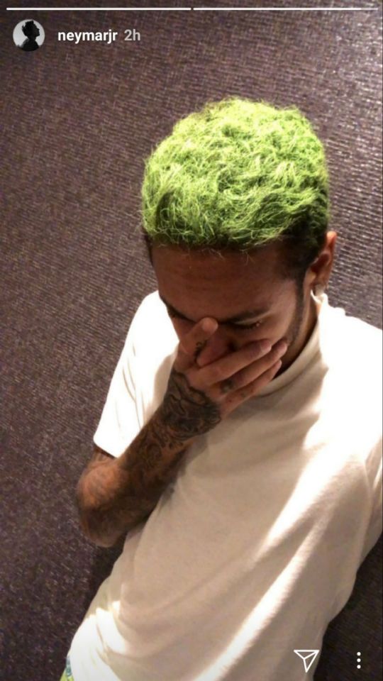 内马尔晒绿色新发型 被调侃“原谅色”