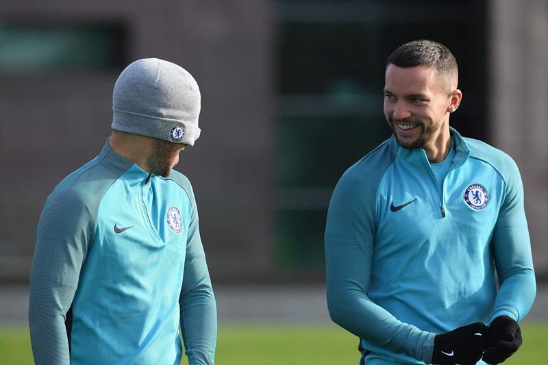当地时间2017年10月30日,切尔西全队正在训练备战欧冠。由于天气冷,训练间隙,蓝军天王阿扎尔变身蒙面超人,用帽子直接盖住眼睛,抵挡寒风,队友见到他这副模样直接被逗笑。