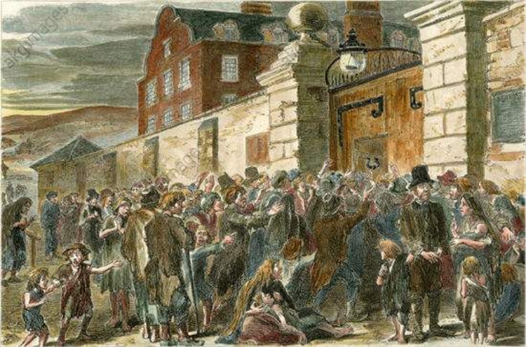 1845到1850年的土豆霉病爆发,就造成了爱尔兰历史上最大的饥荒。土豆歉收,人们无以充饥。而在当时,由于英国殖民占领,爱尔兰的土地由英国地主所有,交纳高额地租,只有当农民己经完成了规定的生产任务,才有可能耕作自己的土地。土地的租期随地主的意志而定,地主可以因为欠租驱逐佃农。在这种土地制度下,如果土豆歉收,人们也不能食用拿来交租的谷物,更有可能被地主驱逐,从而加剧了饥荒的爆发。