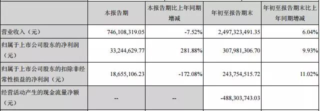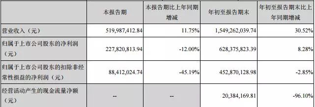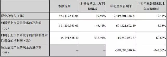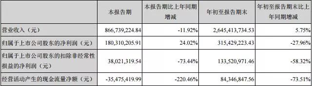 第三季度光线传媒的营业收入为5.2亿,相比上年同期增长11.75%;归属于上市公司股东净利润2.28亿,相比上年同期减少12%;归属于上市公司股东的扣除非经常性损益净利润仅为8841.2万,相比上年同期减少45.19%。