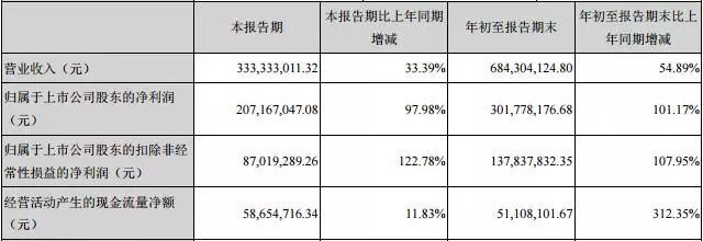 美盛文化2017年前三季度,实现营业收入6.84亿元,同比增长54.89%,实现归属于上市公司股东的净利润3.02亿元,同比增长101.17%,实现归属于上市公司股东的扣除非经常性损益的净利润1.38亿元,同比增长107.95%。其中第三季度实现营业收入3.33亿元,同比增长33.39%,实现归属于上市公司股东的净利润2.07亿元,同比增长97.98%,实现归属于上市公司股东的扣除非经常性损益的净利润8702万元,同比增长122.78%。
