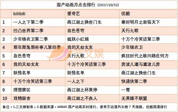 续集大法好的威力再次显现,本月正式上线的《一人之下》第二季、《凹凸世界》第二季、《少年锦衣卫》第二季强势占领本月B站国产动画播放量排行前三名。根据腾讯动漫独家签约漫画《理想禁区》改编的同名动画本月上线,也闯入前十。另外,根据网易漫画推出的校园题材漫画作品《深夜的女生宿舍》改编的《戏精宿舍》也进入了前十,作品讲述的是大学女生宿舍里复杂而现实的人际关系,虽然这只是一部“有声版漫画”,并非动画,但接地气的现实题材作品着实广受欢迎。